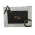 silver plated frame adorned with green aventurine gemstone carved alphabets, Size: 6x8, picture size 4x6