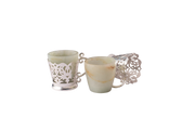 silver plated deetachable outer tea cups. Washable hand carved rosequartz glasses.