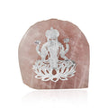 Composition - Silver plated, heavily lacquered hand cut goddess placed on a rose quartz base. Available in silver as well stone Size: 6x6