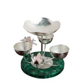 Silver plated platter and mini bowl set with rose quartz buds and malachite plate.