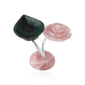 Bringing in the purity and auspiciousness of the rose to your temple permanently. Hand carved Rose quartz rose with a hand carved Deepak make a beautiful pairing. Adding a bit style, femininity and art to your prayer.  Size 4x4