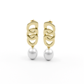 French style baroque pearl dangling earrings with gold plated Cuban link chain; elegant and beautiful